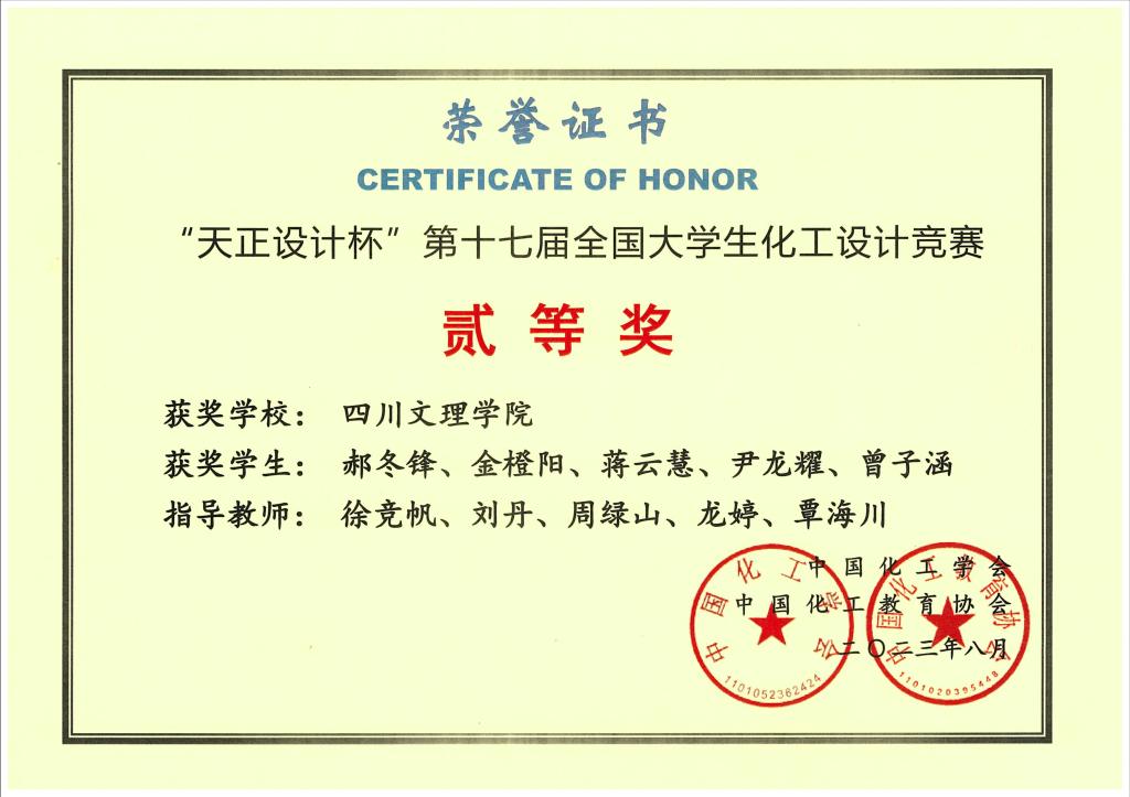 “天正设计杯”第十七届全国老员工化工设计竞赛 |