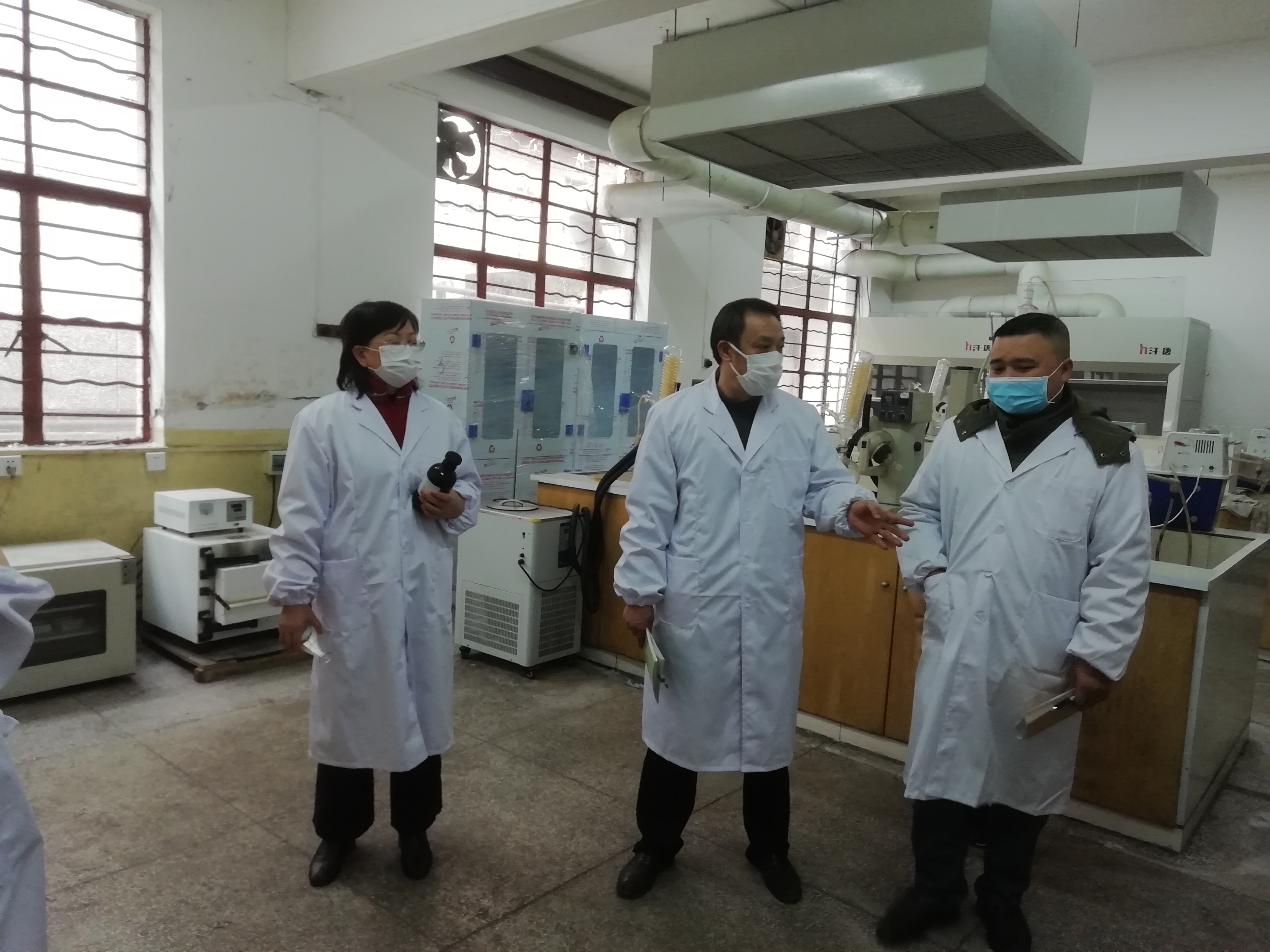 进行了逐一查看,对各实验室中的消防设施、水、电、气瓶、化学试剂等的安全隐患进行了排查,对存在