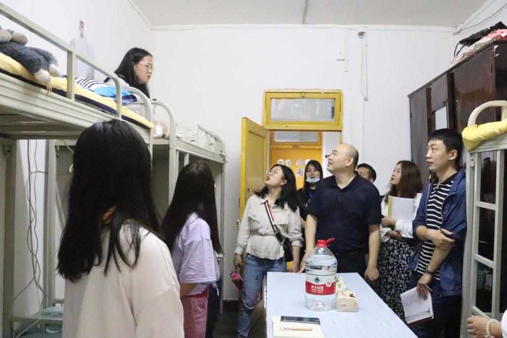 2020年9月16日下午,公司党总支副书记屈川,学工办副主任崔宝玉,专兼职辅导员及辅导员助理走访了新生寝室。