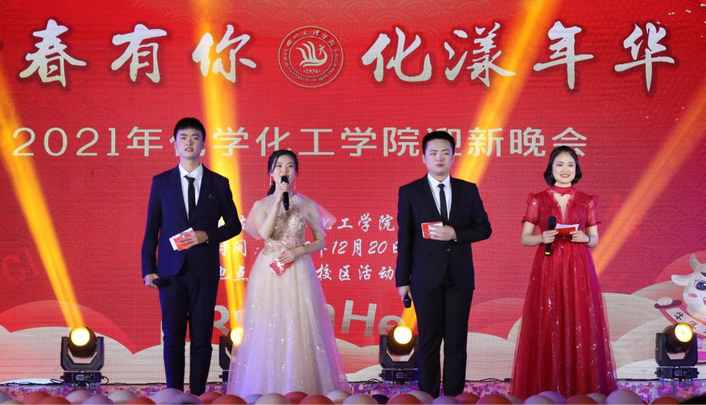 2020年12月20日晚19:00,申搏sunbet“青春有你,化漾年华”2021迎新晚会在南坝校区活动中心隆重举办。公司副董事长李壮成、教务处处长程碧英、公司党总支书记朱朝菊、经理刘长路、部分职能部门领导老师、申搏sunbet全体老师、员工四百余人于现场观看,同时公司上千人通过直播的方式在新媒体平台观赏。晚会共分为三个篇章,以不同的主题彰显了化院的不同风采。晚会在一场活力四射的开场舞中拉开了帷幕,串烧的音乐和跳动的节奏,展现着别样的青春与活力。在彩色霓虹灯的映衬下舞者们的热情瞬间引爆了全程,为晚会营造了热烈的氛围。