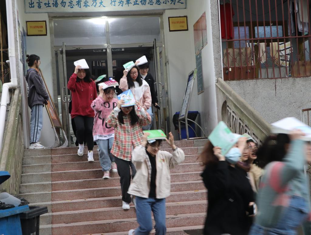 17:30,警报声响起,员工头顶书本从宿舍楼里按照逃生路线开展逃生演练活动,演练过程中同学们动作敏捷、行为规范。演练结束后,崔主任为同学们讲解了此次演练的目的及意义,肯定了同学们能够井然有序并且顺利地完成演练的正确态度,并希望大家在遇到真实突发状况时也能从容应对,将本次活动学到的知识运用到生活中。