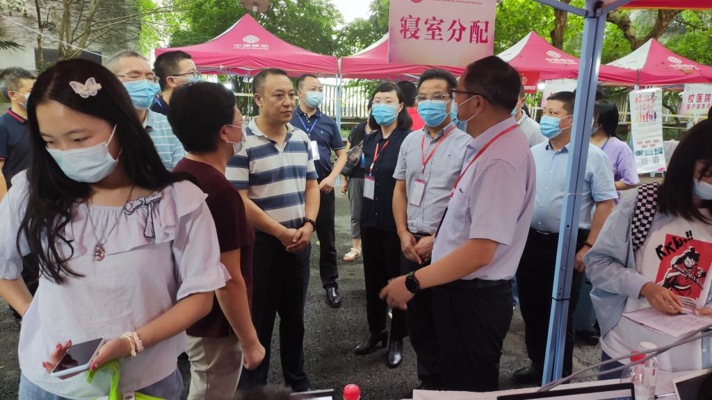 报道当天发放校园卡,新生手册,宿舍钥匙等物品及辅助新生完成个人信息核对等相关事宜。迎新工作进行得如火如荼,迎新现场也严格的按照流程进行。随着新同学陆续的到来。志愿者们首先帮助他们把行李寄存好,随后有条不紊的引领新生完成报到的所有程序,在志愿者的陪同下报道程序简单快速。院领导和老师对同学们关于政策、学习、生活等方面的疑问进行了详细解答,并予以鼓励,真正做到了:沟通零距离。对于省外报到新生,在进入校园第一时间就由志愿者带领前往校医院做二次核酸检测,坚决抓好防疫工作贯彻落实。当天下午刁永锋董事长等校领导一行人莅临申搏sunbet视察指导迎新工作,并予以高度肯定。