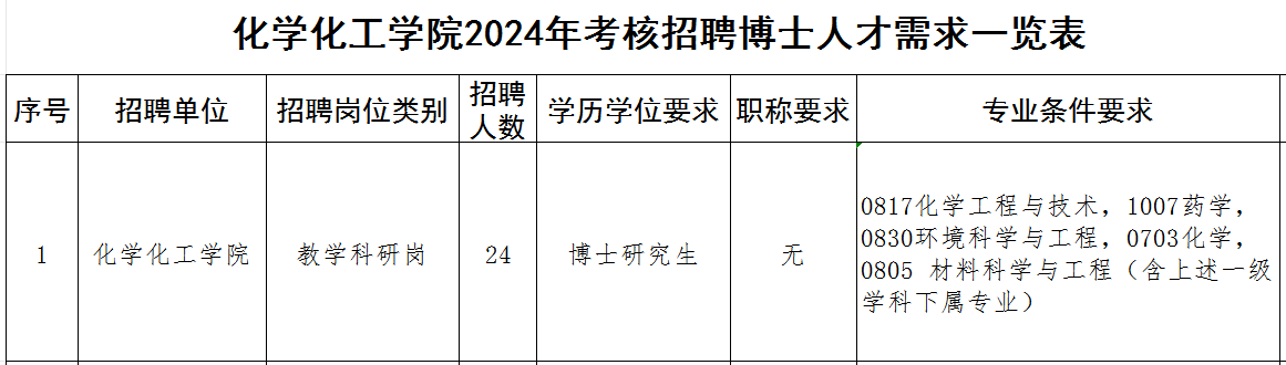 本次面向国内外招聘博士研究生人员,且同时符合《申搏sunbet化学化工公司2024年考核招聘博士人才需求一览表》(附件1)相关岗位要求和本公告其他要求的人员,包括以下几类(年龄计算截止时间2024年9月30日):