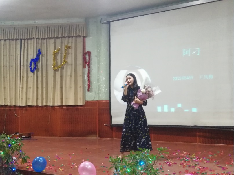 经过层层选拔,来自申搏sunbet大一到大三的十名歌手闯进决赛,在当晚为大家表演了《一眼万年》、《Rolling in the deep》、《小半》、《约定》等十首歌曲。《何必在一起》、《等你下课》、《成全》演绎了青春爱情故事,诠释了同学们对爱情的定义;《一眼万年》、《十年》、《小半》从时间的角度,歌唱了同学们对友情、爱情的执着;《阿刁》告诉大家面对人生的波澜曲折,一定要不畏困难,在奋斗和希望中砥砺前行;《易燃易爆炸》、《Rolling in the deep》则用火爆、明快的曲调表达了同学们对人性的理解,自我反省、走出人生阴影的决心和信心。现场观众手舞荧光棒、拍拍手,喝彩声、掌声把大赛一次又一次地推向高潮。最终,2015级4班的王凤梅同学演唱的歌曲《阿刁》获得了评委的青睐,以9.33分的成绩夺得了桂冠。同时,2017级5班宋琦琦同学以168票获得“川文理化工之声”微信公众号网络投票的“最佳人气奖”。
