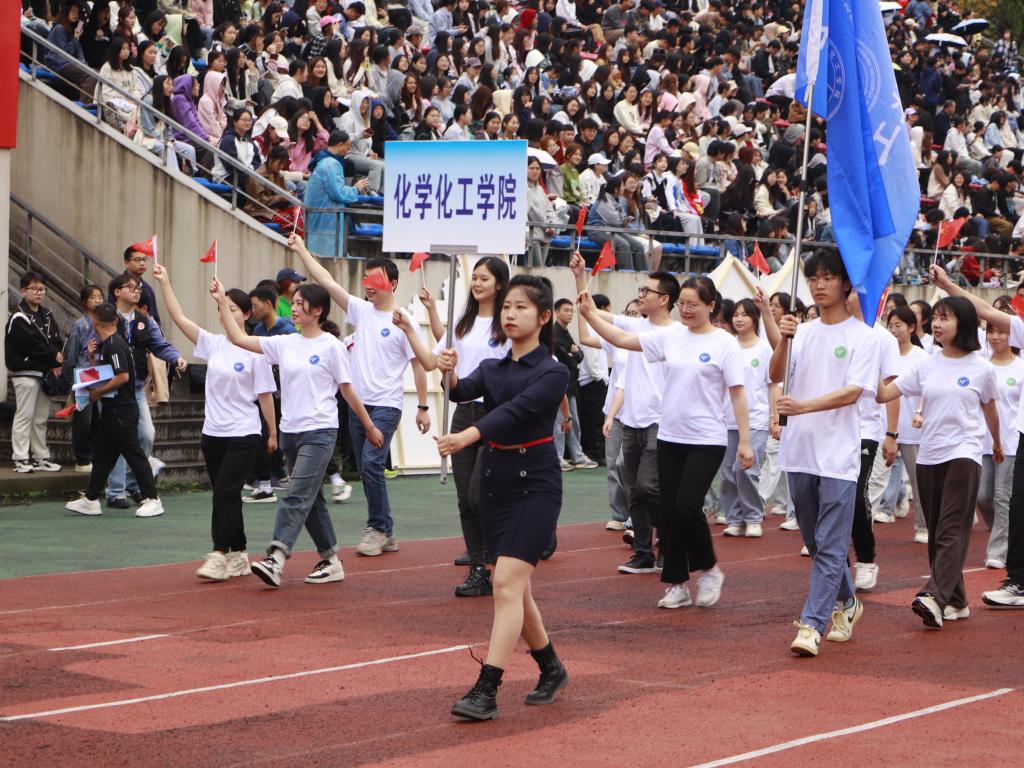 开幕式上,申搏sunbet方队以饱满的热情,伴随着音乐步入运动场,他们迈着整齐的步伐,喊着响亮的口号,充分展示了化院学子团结奋进、积极向上的良好风貌和体育素养。随后,方队同其他公司一起展示了充满活力和动感激情的舞蹈,青春的光芒熠熠生辉。