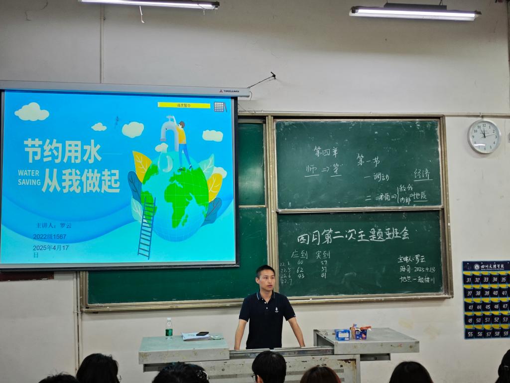 在互动环节,有的班级开展了节水知识问答活动。通过有趣的题目,加深同学们对节水知识的理解和记忆。有的班级组织员工分组讨论,共同探讨如何在校园中营造良好的节水氛围,提出了设置节水标语、开展节水志愿活动等诸多可行性建议。最后,各班辅导员结合当前水资源短缺形势和可持续发展要求,再次强调节约用水对于生态环境、社会发展以及个人生活的重要意义。同时,他们指出节水不仅是应对水资源危机的必要举措,更是一种社会责任和文明素养的体现,鼓励同学们养成良好的用水习惯,从自身做起,从现在做起。