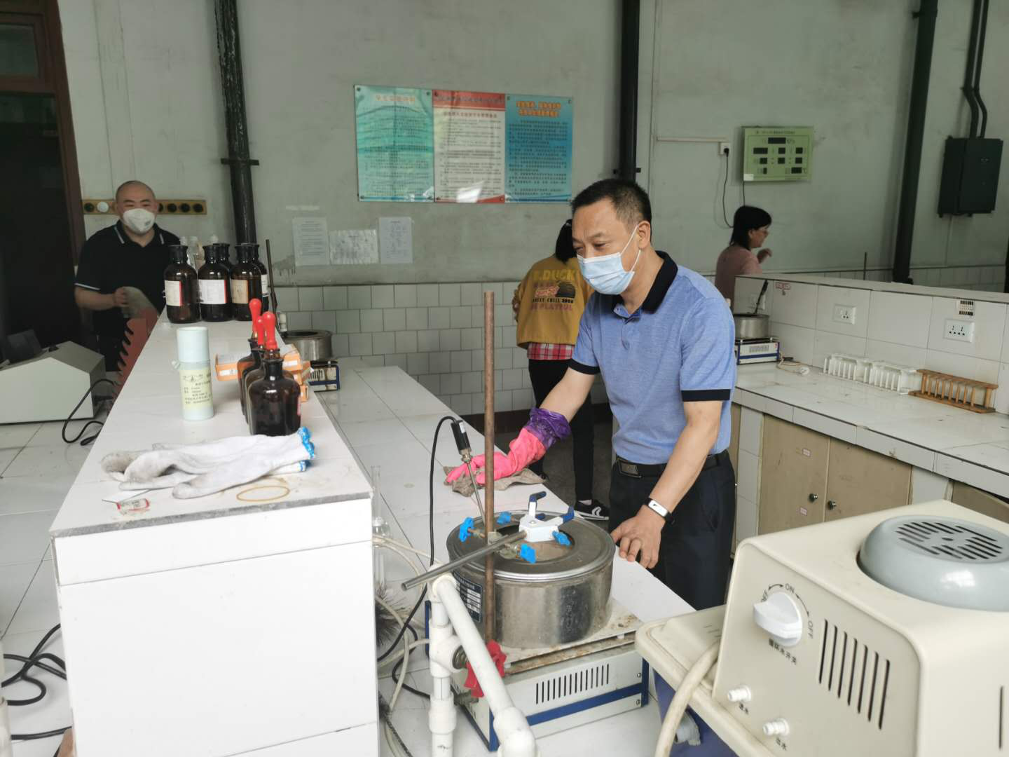 活动开始后,朱朝菊书记首先强调了本次活动的目的:在于引导全院教职工树立讲文明、讲卫生、防疾病、除陋习的良好习惯,营造人人参与“四城同创”的浓厚氛围。同时结合员工返校工作,朱书记指出在充分掌握员工返校前14天身体健康情况、确保安全的前提下,分两个批次落实大三、大四年级员工返校。为保证实验室能正常安全运行,公司领导还对实验室进行了安全大检查,并对各实验室药品进行清理,确保实验室无安全隐患。