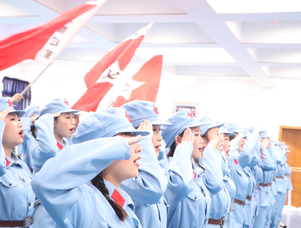 100年前,在中华民族存亡绝续的关键时刻,一群风华正茂的有志青年推动了中国共产党的成立。在100年波澜壮阔的历史进程中,中国共产党为中华民族作出了伟大历史贡献,一代又一代有为青年以爱国、热血、奋斗担起了时代大任。为纪念在抗日战争中流血牺牲的人们,同学们献唱歌曲《七律长征》,歌声嘹亮,气势磅礴,让人不禁联想长征战士的坚强意志和不屈精神,他们用歌声表达了敬佩之情。标志着化工学子在新时代下不断传承其中的精神内核,使长征精神成为一代又一代年轻人奋勇向前的精神动力。