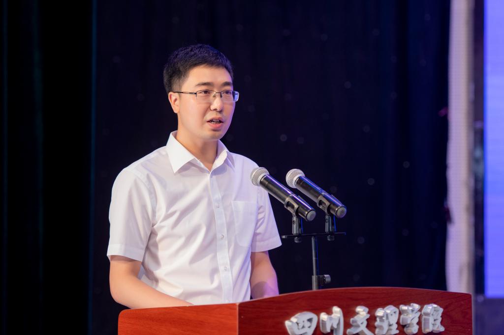 签约仪式上,产学研合作单位达州生态环境监测中心站站长胡蕴明作为专家代表进行交流发言。他从学习、研究、生产实践等方面对产学研合作提出了建议与规划,他坚信产学研合作一定会硕果累累。