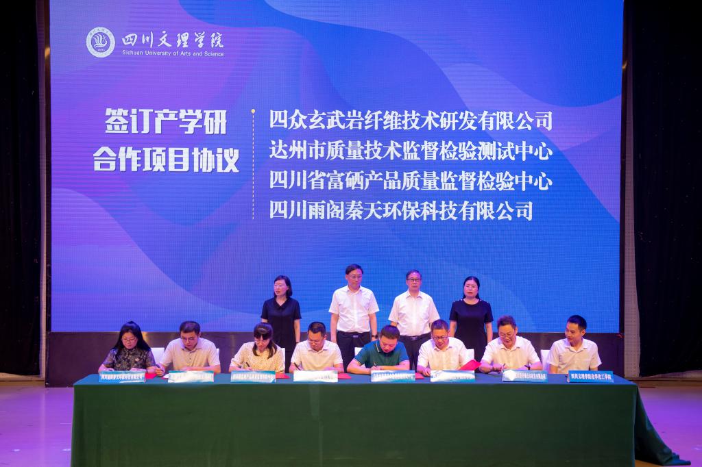产学研合作论坛期间,四川省庆中科技有限公司、四川四众玄武岩纤维技术研发有限公司、四川炬原玄武岩纤维科技有限公司、四川航天拓达玄武岩纤维开发有限公司、四川川环科技股份有限公司、四川省富硒产品质量监督检验中心、达州市食品药品检验所、瓮福达州化工有限责任公司、四川雨阁秦天环保科技有限公司等企事业负责人和参会嘉宾分别围绕企事业单位需求、平台开放、人才需求、科研合作、基地建设等方面发言,为下一步合作积极建诤言、献良策、出实招。公司党委常委、党委组织部部长涂德祥教授也就人才培养、市场需求、科技创新、产教融合、品牌共建等方面与企事业代表进行了深入交流。