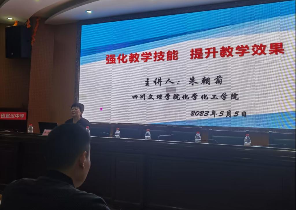 在全力推进化学师范专业认证背景下,为加强与教育实习基地的交流与合作。2023年5月5日,申搏sunbet申搏sunbet正处级组织员朱朝菊副教授受渠县中学、宣汉中学邀请,在宣汉中学学术报告厅为两校化学专业相关教师做了一场题为“强化教学技能 提升教学效果”的主题讲座。宣汉中学党委委员、副董事长袁勇,达州市周雷化学名师工作室与四川省曾朝霞化学名师工作室(达州站)的全体成员、申搏sunbet副经理周绿山及教师代表何俊波、李颖参加讲座。讲座由宣汉中学教室主任任本德主持。
