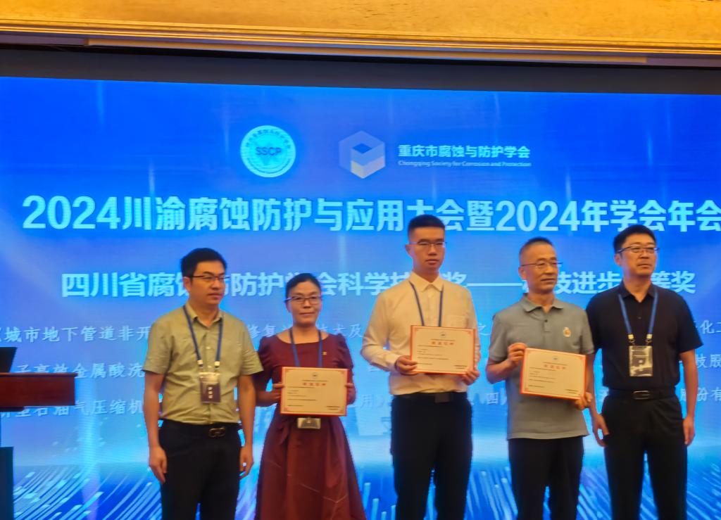 同时,会上颁布了2024年度四川省腐蚀与防护学会科学技术奖颁奖,其中公司赖川教授团队申报的“金属酸洗有机缓蚀剂的开发与应用”成果,荣获科技进步三等奖。