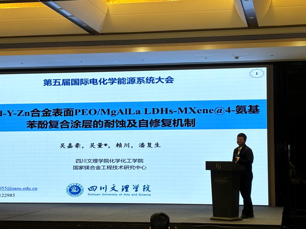 本次大会由东南大学、国际储能材料学会、上海交通大学绍兴新能源与分子工程研究院、北京化工大学化学公司等29家单位主办,由东南大学能源与环境公司、北京理工大学长三角研究院(嘉兴)、湖南文理公司、江苏理工公司、长春理工大学材料科学与工程公司和申搏sunbet申搏sunbet承办和协办。重庆大学潘复生院士向大会致辞,杨裕生院士、成会明院士、俞书宏院士、Prof.0liver G.Schmid 院士、Prof.Ho Seok Park院士等出席大会并做主旨报告。其中,吴嘉豪博士代表申搏sunbet申搏sunbet在会议上做了题为“Mg-Gd-Y-Zn合金表面PEO/MgAlLa LDHs-MXene@4-氨基苯酚复合涂层的耐蚀及自修复机制”的报告,为涂层的电化学腐蚀测试和微区电化学技术的功能应用提出了创新性思路,获得了与会同行和专家的高度评价。