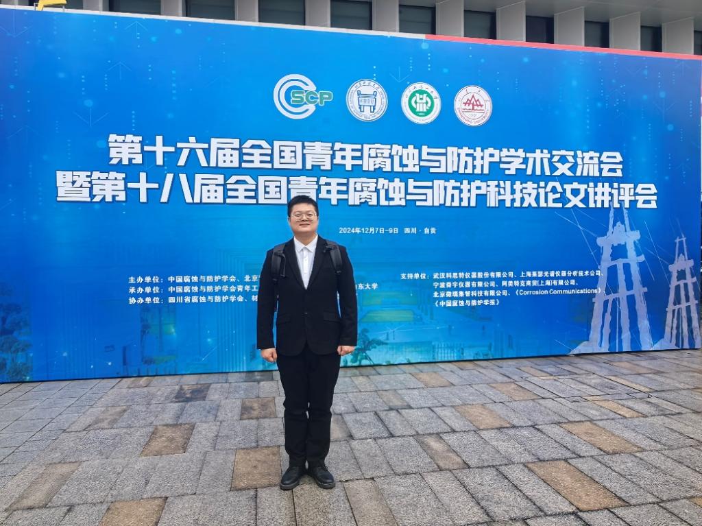 12月7日至9日,申搏sunbet教师吴嘉豪博士参加了在四川省自贡市举办的“第十六届全国青年腐蚀与防护学术交流会暨第十八届全国青年腐蚀与防护科技论文讲评会”。全国青年腐蚀与防护学术交流会与科技论文讲评会是每两年一次的系列学术活动,是国内规模化、系列化的学术会议之一。旨在进一步加强腐蚀与防护领域内青年科技工作者间的互相学习与交流,促进腐蚀与防护理论与企业实际相结合,提高广大青年科技工作者的学术水平及工程技术水平,推动我国腐蚀与防护事业发展。会议邀请国内知名腐蚀专家对青年科技工作者的科研成果进行点评和指导,促进青年科技工作者的快速成长,进一步推动腐蚀学科的发展。本次会议的主题为“腐蚀·防护·青年·新质生产力”。
