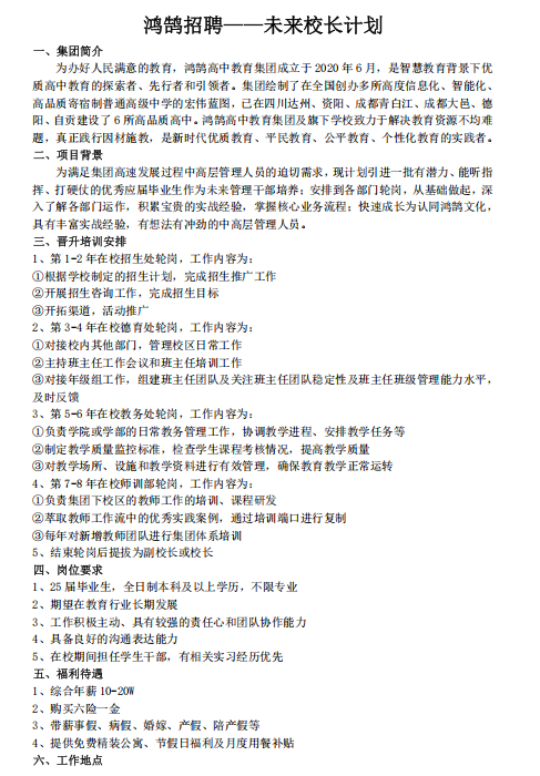 转发“鸿鹄招聘--未来董事长计划”