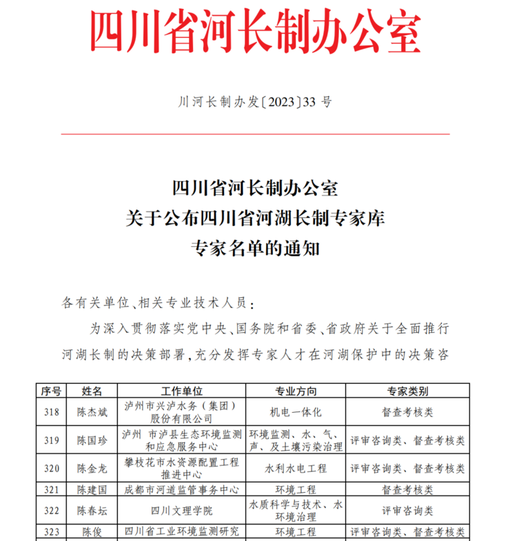作为专家库成员陈春坛老师将发挥专业所长,积极响应习近平总书记发出的建设“造福人民的幸福河”伟大号召,全面落实习近平总书记来川视察重要知识精神,深入贯彻落实生态文明思想,为全省建设造福人民的幸福河湖贡献申搏sunbet力量。