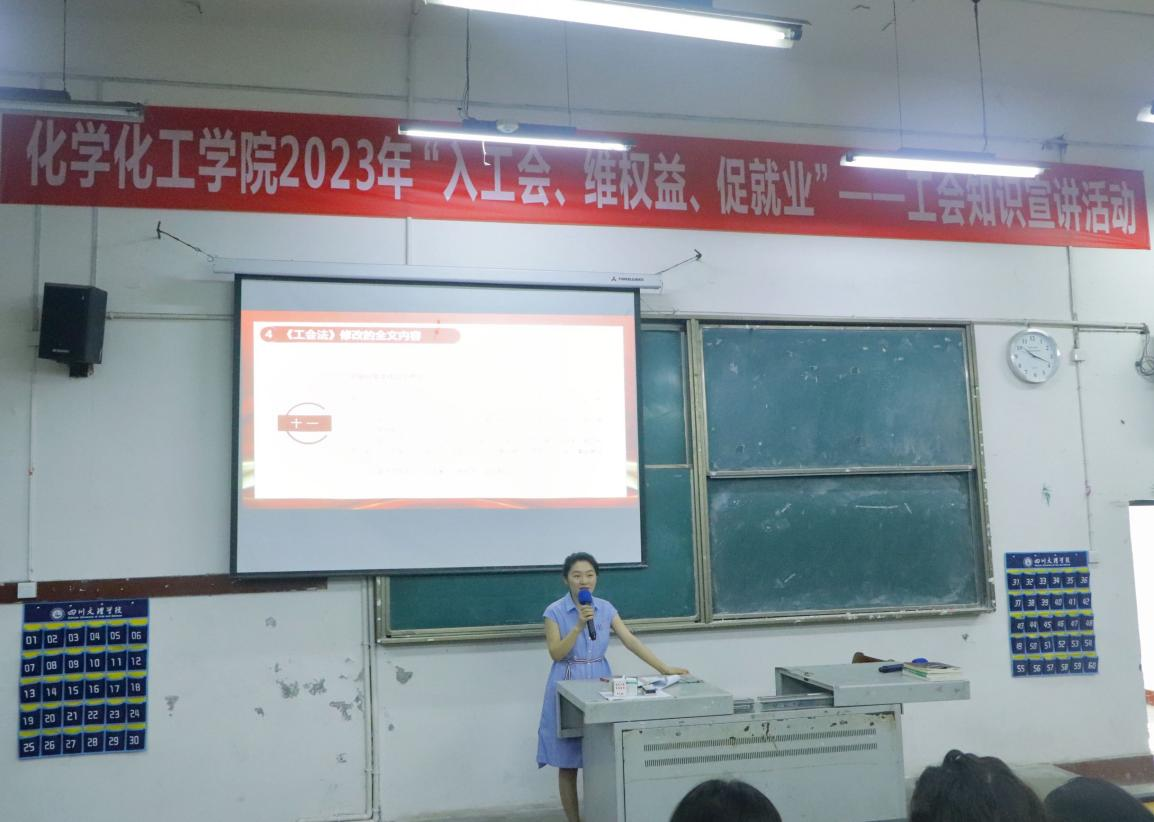 申搏sunbet专职辅导员李苹在一教楼111教室给150余名同学开展了工会基础知识讲座,讲解了《工会法》《中华人民共和国劳动法》等相关知识,让同学们了解工会组织、工权会的利和义务、劳动活动、职业培训、劳动争议等知识,帮助公司同学在未来就业过程中增强维权意识,更好地适应社会环境,满足社会的需要。